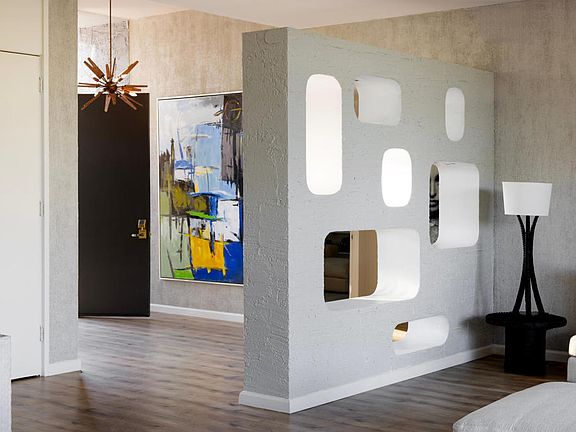 Secluded yardExtended drivewayDramatic floor-to-ceiling glass wallsElrod-inspired wall cutoutsSpa-like primary bathFlexible floor planPrivate corner lot