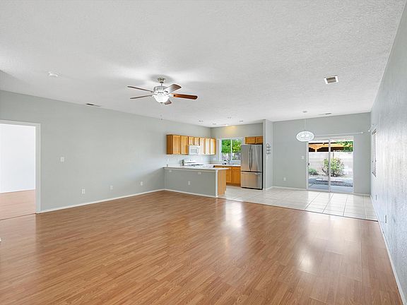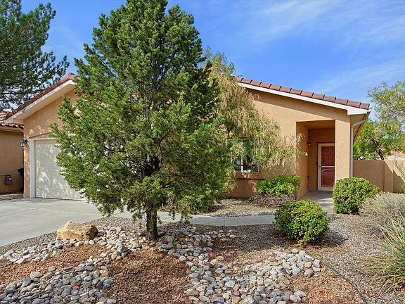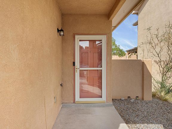 Move-in ready and nestled in the highly sought-after Vista del Norte subdivision, this charming 2-bedroom, 2-bath home offers the perfect blend of comfort and convenience. Enjoy quiet evenings under the stars in a peaceful location surrounded by trees. The home features smart technology, including smart outdoor lights, a doorbell, and a garage opener, making life easier. The primary bedroom includes a sliding door leading to your private outdoor space. Additional highlights include a pitched tile roof, refrigerated air installed in 2020, and a sweet bonus: on some days, enjoy the lovely scent of fresh cereal from General Mills. Bike trails are just minutes away, and during the annual International Balloon Fiesta, you can watch hot air balloons float overhead, with