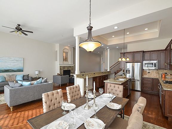 Beautiful newer Inverness townhome in Mason Du Comte! This is the newest designed unit and offers dramatic 12' ceilings throughout the entire main level & dramatic ceilings in bedrooms too! The open concept floorplan is limited to these newer units & offers a whole new modern feel. The island kitchen, dining area & living area w/frplc are all open with wonderful flow. The kitchen features rich cabinetry, loads of granite counter space, stainless steel appliances & a great breakfast bar. You'll also find soaring windows w/motorized window treatments & deck access. On the 2nd level there are 3 bedrms, each generous in size. The master suite features 12' ceilings, attached sitting room, luxury bath & walk-in closet. Vaulted ceilings are found in the other 2 bedrms. This property includes 2nd level laundry. In addition, the walkout lower level is beautifully finished a rec rm w/frplc, ext. access to patio, natural light, exercise rm, workshop/stg rm & full bath. It's all here, Stunning!