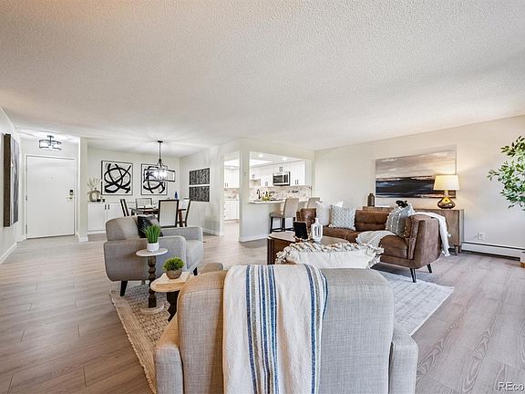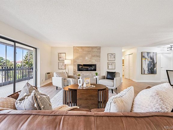 Sunny corner location fills this home with natural light and overlooks a greenbelt with majestic trees and garden area. Just remodeled from top to bottom. This is one of the nicest homes available in Heather Gardens, Aurora's premier 55+ community. 2 bedrooms plus 2 baths, spacious enclosed lanai adds multi-season living space and 1 underground parking space with direct elevator access to your residence floor is so convenient. Large open great room with contemporary linear fireplace, separate dining room plus open kitchen with eating bar. LVP, wood look flooring throughout the living areas. New soft close cabinetry in the kitchen along with quartz counters and stainless appliances. New baths with new fixtures, tile, cabinets and counters. New paint throughout. New carpet. New hardware and lighting. In-unit laundry. Enjoy this beautifully re-designed home surrounded by amazing amenities including a multi-million dollar clubhouse, executive 9-hole golf course, indoor and outdoor swimming pools, fitness center, tennis courts and countless community activities. Live a great retirement lifestyle at Heather Gardens!