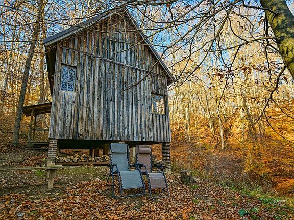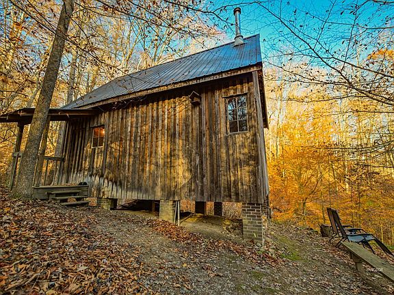 Live in the sunshine, swim in the sea, drink the wild air.. "Live in the sunshine, swim in the sea, drink the wild air." Constructed within 26 acres of mature forest, this handcrafted poplar and pine cabin is a rustic and charming retreat from the world. Inside, an open floor plan with a lofted sleeping area and kitchenette invites quiet reflection and easy living. The kitchen has a 2 burner induction cooktop, a small refrigerator, and a sink that pumps and pressurizes water brought in from town. Three creeks wind through the property, and seasonal foraging opportunities abound: beech nuts, morels, ginseng, and more await your discovery. Hike the rustic trails to enjoy caves, ridges, and natural features while your gated drive ensures your privacy and peace. Mineral and timber rights convey according to the owners. Included furnishings are getaway or rental ready to sleep up to 6. Outside conveniences include an outhouse with an Incinolet incinerating toilet. The sellers poured heart and soul into creating their forever cabin, a retreat where they can experience the joy of living in the wild, and they are sad to leave. The cabin would make an ideal writer's retreat, family vacation spot, or an Airbnb.
