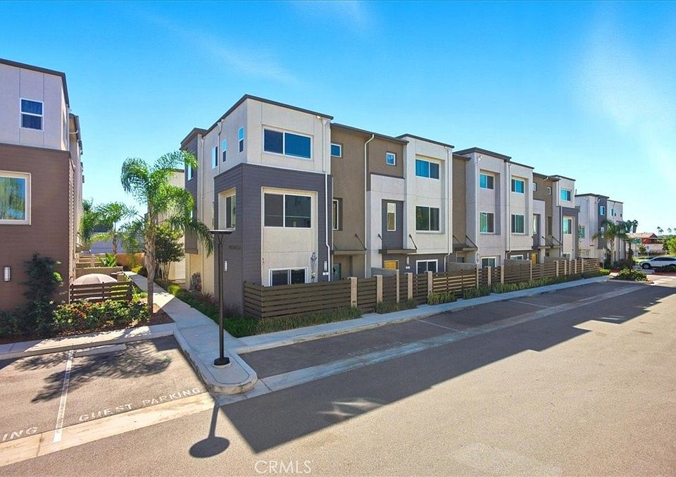 Welcome to this beautiful 3-story townhome within the popular gated "Stonefield" community featuring 3 bedrooms, 3.5 bathrooms and a direct access 2-car garage! The first floor has a bedroom with ensuite bathroom, private spacious patio and direct garage access. The second floor is an entertainer's delight with a light and bright kitchen boasting stone countertops, white shaker cabinetry, ample sized walk-in pantry and premium stainless steel appliance package! The third floor features two bedrooms: the primary suite with a large walk-in closet, a dedicated linen closet, and a luxurious bathroom with separate tub and shower and the third bedroom with private bathroom and spacious closet PLUS convenient laundry! Upgrades can be found throughout with luxury "wood look" vinyl flooring, stately light fixtures, recessed lighting and a custom wooden mural in the living room! This is a "smart" home featuring WiFi thermostat, programmable front door, EV outlet in garage, tankless water heater and EnergyStar appliances! Within the gate community there is a private playground and park! This townhome is centrally located near Alondra Park and the Rosecrans Recreation Center, boasts convenient access to shopping, dining and entertainment with the Forum and SoFi Stadium only 7 miles away PLUS only 10 miles from LAX!