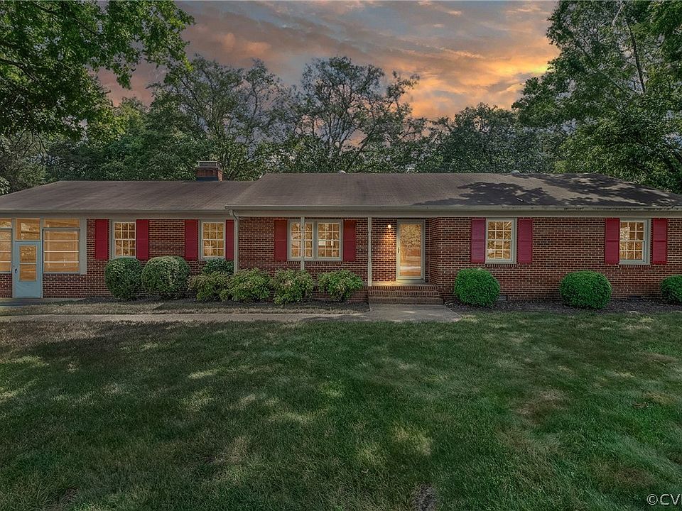 LOCATION, LOCATION, LOCATION! Rare Opportunity to find a Rancher on one acre +/- of a beautifully maintained lot in the centre of Midlothian. 1820 sq. ft +/- built in 1971. Nicely Maintained Hardwood Floors welcome you in the Foyer and lead you into the living room/dining room, FR with a Wonderful Built Ins for Storage or For Displaying Your Treasures and a Propane Gas Fireplace - all off large kitchen. Take Note Of The Original Photograph From 1971 on the wall in the screened in porch. Spacious laundry/utility/hobby room. At the opposite side of the house you will find 3 Bedrooms, 2 full baths. Two independent heating systems - electric heat or heat pump/ ac. All of this wrapped in brick. Detached one car garage with a built-in workbench! 1/4 mile to Sycamore Square, 1/4 mile to the YMCA, close to plenty of Restaurants, Retail and 288 access close by! This Home Has Been Painted to Offer You a Blank Canvas and it is Move In Ready for Some Fortunate Buyer! Reach Out To Your Agent or Give Amy A Call To Book A Showing!!