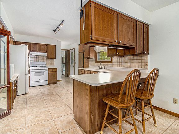 This spacious ranch-style home offers 5 bedrooms with the potential for 7, ideal for hosting, working from home, or creative spaces. The kitchen and dining area are nicely appointed, providing a comfortable setting for everyday meals and entertaining. A warm and inviting room with a fireplace opens through sliding glass doors to a back patio and fully fenced yard. The separate living room and bright 3-season room offer additional space to relax or gather. A full finished basement adds even more flexibility with multiple rooms and storage. Outdoors, enjoy the bounty of established rhubarb, raspberry, and blackberry bushes, along with apple trees—perfect for seasonal harvesting. A well-cared-for property that combines interior comfort with outdoor appeal in a peaceful, private setting.
