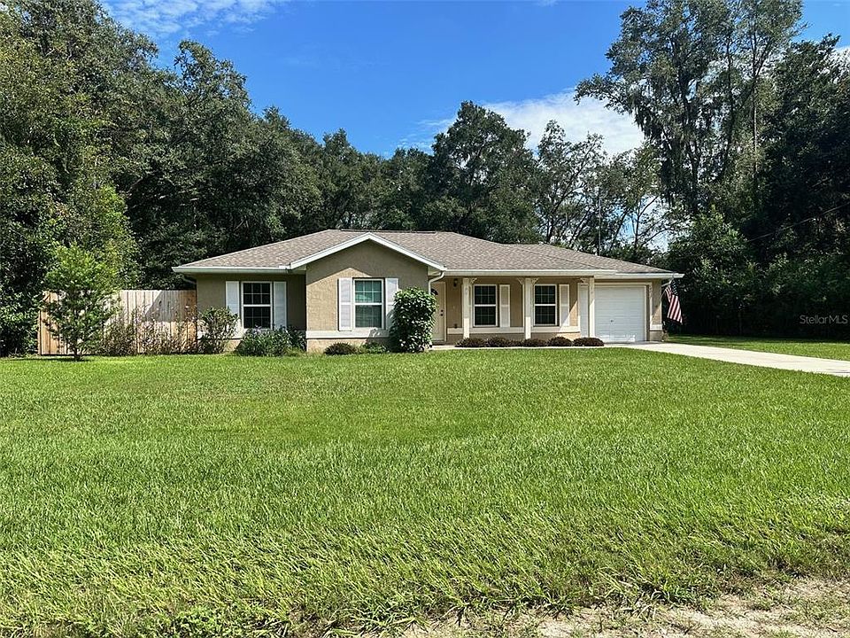Outstanding Home built in 2019 Ready for your Retirement or Great Starter Home 3/2 CBS 0.7 Acres 0.5 cleared Area Great Landscaping. Large 22X26X9 Garage Storage Building, & Workshop, Garden Shed Plus RV Storage Area, Home has Three Bedroom, Living Room and Kitchen with Eat in Area. Large Screened Patio overlooking a nice green space. Close to Hwy 484 ,Ocala and The Villages