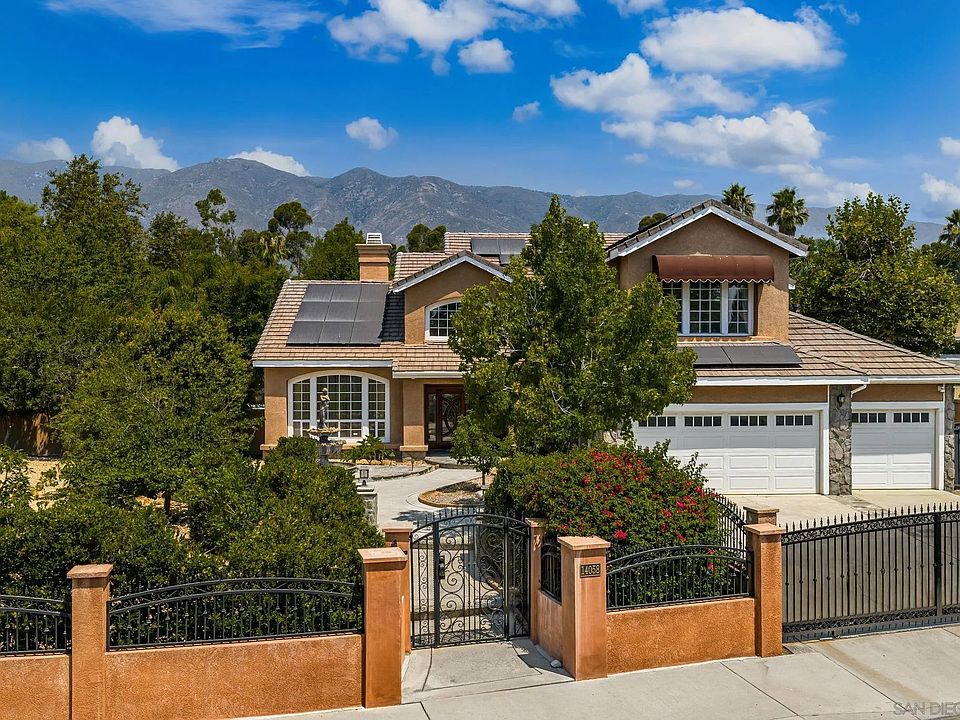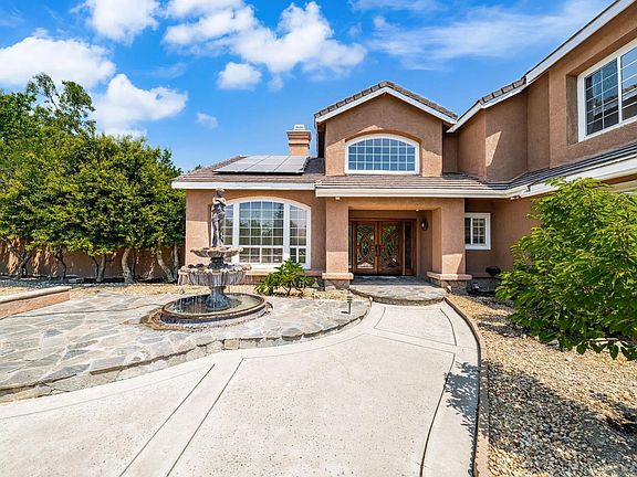 Welcome to your dream oasis in the charming Etiwanda neighborhood. This stunning home showcases over 3,074 square feet of elegant living space, on a 16,200 sqft lot, thoughtfully designed to offer both luxury and comfort. As you enter, you are greeted by a formal living room and dining area, featuring an exquisite double-sided gas fireplace, perfect for cozy evenings and elegant gatherings. The gourmet kitchen is a chef's delight, complete with a central island and abundant counter space, seamlessly flowing into a warm family room with its own fireplace. On the main floor, you'll find a convenient bedroom and full bath, ideal for guests or a home office. Retreat to the luxurious master suite, where relaxation meets elegance. Enjoy the warmth of a private fireplace or step out onto your personal balcony to savor stunning views. The master bathroom is equipped with dual sinks, two expansive walk-in closets, and a separate tub and shower. Two more bedrooms upstairs with a Jack n Jill bathroom set up. Step outside to the unparalleled backyard oasis! Dive into the refreshing pool with a slide, unwind in the spa, or host a memorable dinner at the built-in outdoor kitchen. The kitchen features a BBQ, stovetop, wood-burning pizza oven, and EVO grill top, making alfresco dining a breeze. Additional amenities include a versatile shed and an extra space that could serve as a man cave or office. Set on a large lot adorned with amazing fruit trees, this home offers breathtaking views of the mountain caps. Home boasts a 3-car garage, solar panels, and car chargers... A MUST SEE HOME