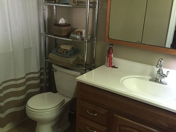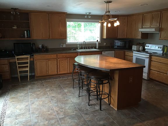 Ranch 1 level in quite neighborhood. Close driving to schools and shopping. Large lot, with a nice deck and huge backyard. You won't find another kitchen like this in this price range, over sized and open. Open floor plan which boosts 4 bedrooms and 3 full bathrooms. 2 master bedrooms with walk in closets and attached bathrooms. Wood burning stove in living room. No road noise, and quite friendly neighbors. No Agents Please