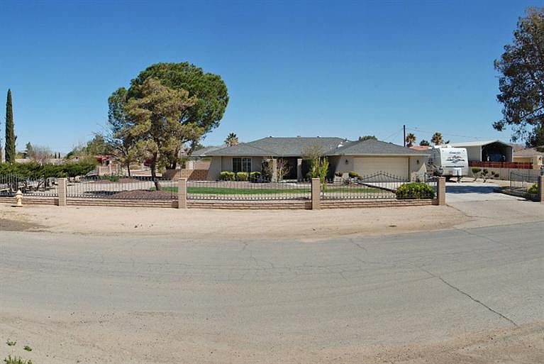Located on quiet street in the Desert Knolls of Apple Valley with in-ground pool and RV parking. Bright and sunny remodeled Kitchen with custom counter tops, inset appliances, plenty of cabinetry for storage and Breakfast bar. Open dining area and family room with plenty of windows to let the light in. Living room with custom bricked fire place. Plenty of room in the back yard for the entire family, covered patio runs the length of home. RV access and parking.
