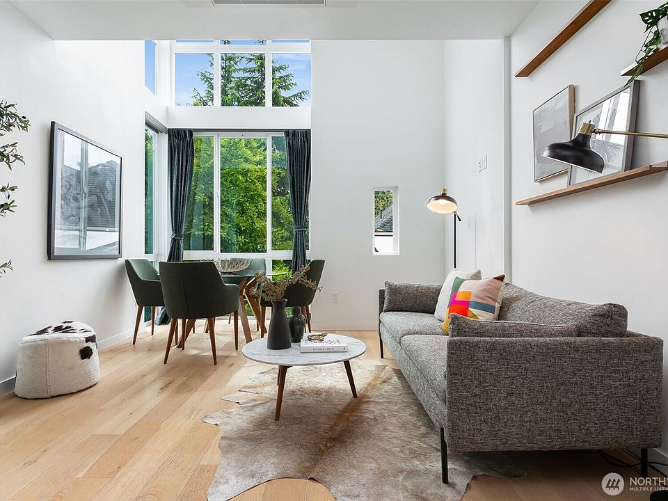 2 YEARS seller prepaid off-site parking! Far from cookie cutter: Pristine, turnkey end unit w/vaulted ceilings & dramatic floor-to-ceiling windows that flood the home w/natural light. 2 beds + den/office, offering versatile flex spaces & rare urban privacy in the heart of the city! Modern design featuring engineered HW, efficient mini-split systems & new carpet. Sleek kitchen w/custom cabinetry & quartz countertops, full-floor primary suite sanctuary w/spa-like bath & dual California Closet systems. Sweeping mountain/city views from your rooftop deck & small turf yard for Fido. Ideally located between Capitol Hill & Central area—parking is easy—steps from PCC, 3 major bus lines, everything at 23rd/Union, 95 Walk Score. PREINSPECTED!