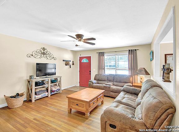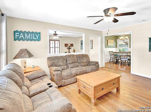 Check out this charming 3 bedroom/ 1 bath Hondo home! Original hardwoods throughout add to the cozy feel along with some of the original features! The bathroom, light fixtures and doors have all been updated. The large, over half acre lot is absolutely beautiful with mature trees, covered patio, sprinkler system and fence! The curb appeal will have you wanting to go inside and you will not be disappointed!
