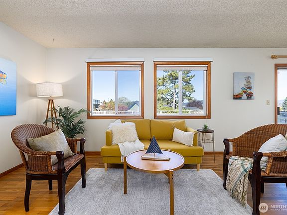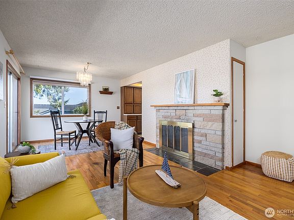 Charming Anacortes home that perfectly blends comfort, style, and convenience. Warm hardwood floors flow throughout two inviting living areas, centered by a cozy fireplace. The spacious primary suite features a walk-in closet and full bath for a touch of privacy and ease. Step outside to a large backyard with a beautiful mahogany deck—ideal for morning coffee or summer gatherings while enjoying views of the water and Mt. Baker. Nestled in a friendly neighborhood close to schools, parks, and town amenities—this is the perfect place to put down roots and enjoy the Anacortes lifestyle.