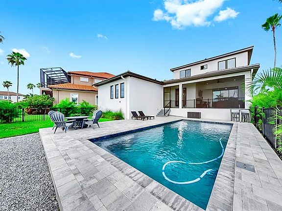 Fenced yardPool homeScreened lanaiHigh-end wood laminateFive spacious bedroomsSparkling poolPrivate bath