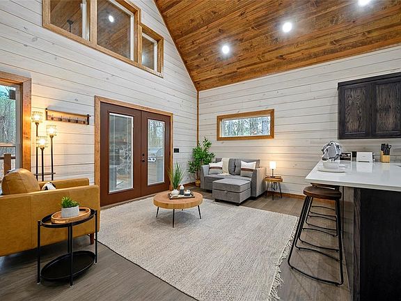 Looking for a private getaway or a charming retreat to call your own? *Tangled Up* offers the ultimate in comfort and seclusion, perfect for those seeking a serene lifestyle or a unique investment opportunity. This beautifully designed 836-square-foot cabin, built in 2023, sits on a nearly 1-acre lot (.97 acres) and features a luxurious master suite with a jetted jacuzzi-style tub, a cozy gas fireplace, and stunning views from every room.