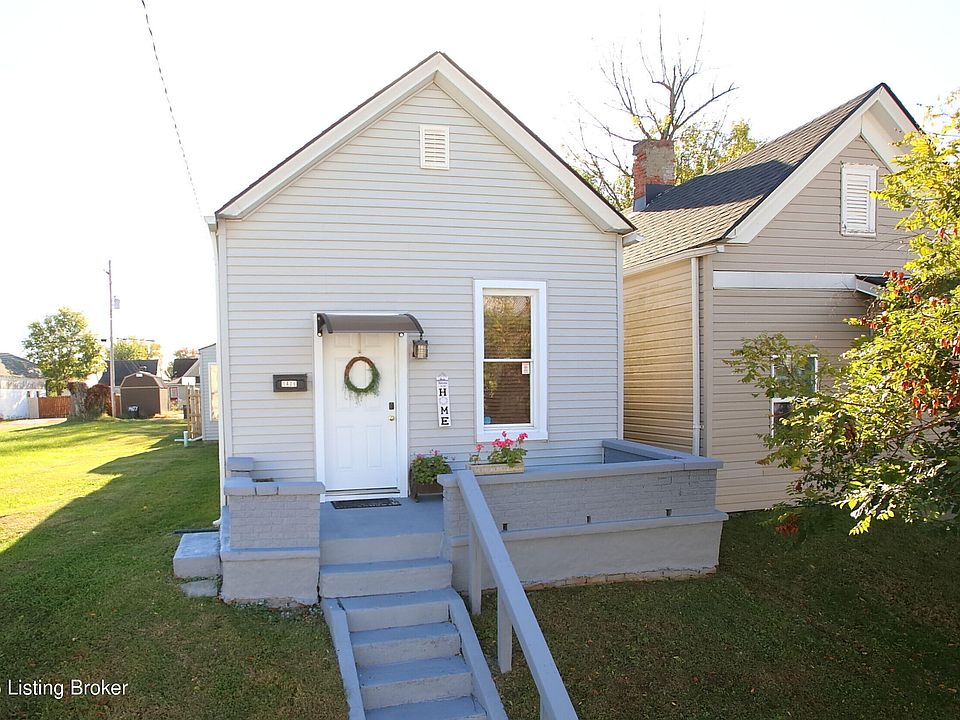 Welcome to 1406 Chartres Street. This charming, updated, shotgun style home is located in New Albany. All the restaurants and shops in downtown New Albany are short drive or a few minutes' walk away. A lovely cozy front porch greets you as you walk up. Heading inside, into the spacious living room, you will immediately notice the beautiful waterproof laminate flooring that is throughout the home. The hallway off the back of the living room connects to the eat-in kitchen and passes the first of three generously sized bedrooms. This bedroom comes with two large closets. The newly renovated kitchen offers gorgeous grey cabinetry, open shelving above the sink, and stainless steel appliances. Continuing down the next hallway connects to the full bath and remaining bedrooms. The full bath offers a newer vanity, mirror cabinet, and tub/shower combination. The largest bedroom is located at the rear of the home, and it offers the possibility of being used as a family room as well, depending on your particular needs. The laundry closet is also located in this room. Heading out back leads you into a fully privacy backyard. The backyard provides plenty of space for small children or pets to play in. The 7' x 7' storage shed will easily store all your lawn equipment. Just beyond the fence is a nice off street parking area with room for two vehicles. On street parking is also available in front of the home. Additional updates include: heat pump installed in 2023, bath renovated, new water heater, flooring replaced and leveled, and fence extended in 2024, and all lights, fans, outlets, and switches replaced in 2025. Don't miss out on this one and schedule a showing today!
