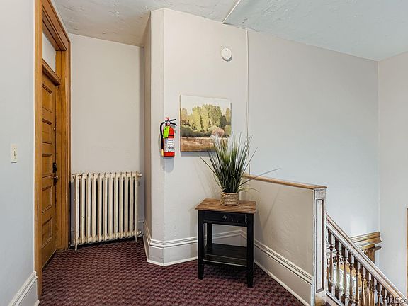 The unit mix includes spacious 1-bed and 2-bed layouts, a studio, and a top-floor attic apartment, each with its own character, tall ceilings, and generous natural light. Once a well-known social destination for government officials more than a century ago, the property carries a unique legacy while functioning as a reliable investment today. Heat is provided by a central boiler, utilities are master-metered, and on-site laundry, currently free, can be converted to income. The two-car garage also offers additional revenue potential.