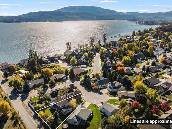 Welcome to Northshore, a coveted community with a private sandy beach, day dock, BBQs, and picnic area just a 1-minute stroll away. This spacious Victorian-style home offers over 3,300 SqFt of living space with 4 bedrooms, 2.5 baths, office w/ beautiful coffered ceiling, and 2 family room areas. A unique peaceful third-floor room with lake views could be a bedroom, art room, or library. Enjoy a thoughtfully updated interior with granite countertops, newer appliances, fresh paint, new flooring on the main level, and modern lighting. The main level includes a primary bedroom w/ensuite bathroom, office, kitchen, formal dining room, breakfast nook, family room, 1/2 bath, and a Laundry room, while upstairs features three bedrooms, a full bath, and an extra large family room. The double-deep garage has doors on both ends—perfect for boats or toys. Exterior upgrades include new paint, improved decking, mature landscaping, and a covered wrap-around front porch. Located within walking/biking distance to beaches, schools, War Memorial Field, shops, and restaurants. Just minutes to Schweitzer Mountain and endless outdoor adventures as well. Come see it—you won’t be disappointed!