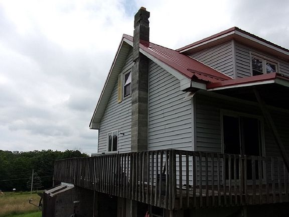 Modular cape cod style home with 2 BR's on main floor and 2 more on the second floor. Sliding glass doors from the DR lead to a wraparound deck. Unpaved driveway with old concrete parking pad. Home has well and septic, and the functionality of both are unknown. Property has 8.19 acres and a view of the mountains.