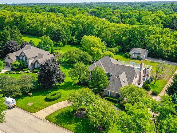 UNBELIEVABLE, 2-STORY, BRICK HOME on close to an ACRE OF LAND with mature trees and backing up to a LARGE GROVE of LUSH WOODS for the ultimate feeling of privacy and seclusion. This home is located on a nice, quiet street in a GREAT NEIGHBORHOOD. The circular driveway and white, all-brick facade give this home FABULOUS CURB APPEAL. As you enter the home you are greeted by a 2-story foyer and a grand oak staircase to the second floor. The spacious front room is perfect for a home office or work space. There is also a formal dining room with custom woodwork including extra wide baseboards and gorgeous crown molding. The ENORMOUS kitchen with HUGE center island is the perfect spot for meal prep and entertaining. This updated kitchen also includes custom cabinets, granite counter tops, separate dining area and stainless steel appliances. This area flows beautifully into the spacious family room with tray ceiling, crown molding and gas fireplace making it a perfect, cozy gathering space. Upstairs you will find four ENORMOUS bedrooms all with tons of closet/storage space, including one bedroom which has an additional living area with fireplace. The spacious master suite has an attached bath with soaring ceilings, skylight, huge soaking tub, dual sink vanity and separate large shower. The full basement is completely finished with two large recreation spaces, a kitchenette that could also be easily turned into a wet bar, an additional bedroom and full bath. This is the perfect spot for a house guest to have their own private retreat! Outside is where the real fun begins with an ENORMOUS, MAINTENANCE FREE, WRAPAROUND DECK with a lovely and cozy gazebo which is the perfect spot for your morning coffee, afternoon siesta or evening cocktails! The deck leads down to your HUGE in-ground swimming pool with diving board and slide! This back yard was made for entertaining and feels like your own PRIVATE RESORT. Imagine the fun and relaxation you could have here and your friends and family will have the opportunity to make memories that will last a lifetime. Beyond the pool is the enormous yard with tons of space for gaming, gardening or just running around. There is also an additional, detached, 2-car heated garage which would be perfect as a mancave, she-shed, extra storage or just a great place to house your extra cars and toys. Inside the woods would be the perfect spot for a private firepit or treehouse. The possibilities are endless! Come check out this GORGEOUS HOME today before someone steals your dream home and it is gone forever!
