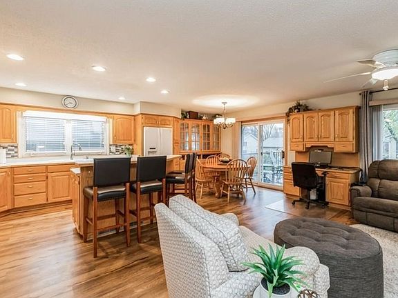 Welcome to this spacious split-foyer home with a bright, inviting entryway. The main level has been completely opened up, creating a seamless flow between the kitchen, dining, and living areas. You'll love the abundance of cabinets and counter space, plus a convenient built-in desk just off the dining area. Durable LVP flooring runs throughout the main level, with cozy carpet in the bedrooms. The updated full bath features a modern vanity and tile flooring. Downstairs, you'll find a large family room filled with natural light from two sets of daylight windows, a cozy fireplace, a spacious 4th bedroom, ¾ bath, and laundry/storage area. Additional highlights include a new roof, new fence, vinyl siding and windows for easy maintenance, an epoxy-coated garage floor, and a handy storage shed. This home truly offers space, updates, and functionality inside and out.