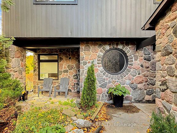 If you're looking for something truly unique, this is it! A stunning stone home on nearly 1/2 acre, backing onto the Petticoat Creek Ravine. Set back from the street, the property features a landscaped 50 ft frontage, a circular driveway, and a double car garage. Inside, the home has been beautifully renovated with an open-concept kitchen, a large breakfast bar, oversized windows that offer a fantastic view and so much light, and a walk-out to a balcony overlooking a breathtaking 385 ft deep lot surrounded by nature. The main floor includes a cozy family room with a stone fireplace, a bright and open living and dining area, and a large laundry room as well as a 2 piece powder room. Upstairs offers three spacious bedrooms, including a primary suite with beamed ceilings, a luxurious ensuite with walk-in shower, and a private deck with panoramic views. The finished lower level features a walk-out to the garden, a beautifully renovated bathroom, laminate floors, and a versatile study currently used as a bedroom. There is more space currently being used for an office. This exceptional property combines character, charm, and privacy-offering the best of country living in the city. Move-in ready and truly one of a kind! Located in Pickering's sought-after Woodlands community, just minutes to Petticoat Creek Conservation Area, waterfront trails, parks, and schools. Enjoy quick access to Highway 401, GO Transit, shopping, and restaurants while living on a quiet, tree-lined street surrounded by nature-offering the perfect blend of convenience and tranquility.