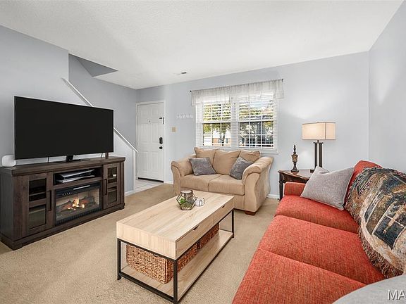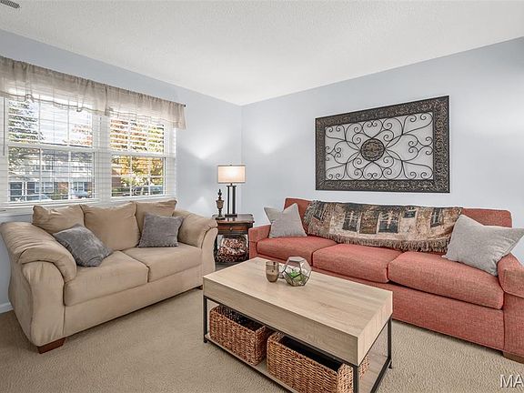 Wonderful 2 story townhouse on a quaint small tree lined street in Brentwood Forest. This rare floorplan is a 2 bed, 1 bath townhome featuring main floor laundry, living room, dining and kitchen with white cabinetry and a large inside storage closet on the main level. Off of the dining room, through the new sliding doors, there is a new maintenance free deck (2025) with a beautiful garden view. 2 bedrooms and a full bath upstairs. This community boasts 2 pools, tennis courts, clubhouse, walking trails, a beautiful lake and is close to all the conveniences of Hwy 40/170 and Brentwood Commons Shopping. Landscape, snow removal, parking, trash and some insurance is included in the $363/mos condo fee. Updates include - newer vinyl windows, sliding door and roof (2024), smart thermostat, lighting and blinds. Outdoor storage closet, assigned parking space with ample guest parking. This is a good one with such a central and ideal location to everything St Louis.