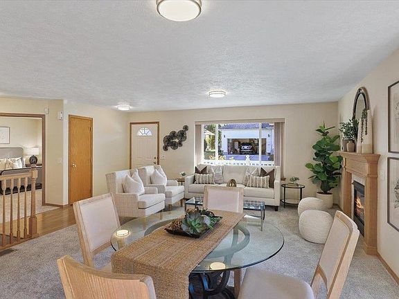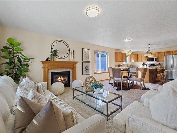 Beautifully maintained 4BD/3BA main floor living rancher in Dhaenens Square 55+ gated community with nearly 2,700 sq ft of living space. Light and bright with fresh interior paint, new carpet, and an open floor plan. Spacious kitchen features stainless steel appliances, center island, pantry, and ample cabinetry. Main floor includes gas fireplace, large primary suite with walk-in shower, two additional bedrooms, and guest bath. Full daylight basement offers second living room, 4th bedroom, full bath, and bonus room. Finished 2-car garage with side-yard access. HOA covers lawn care, snow removal, walking paths, and available RV/boat storage (small fee).