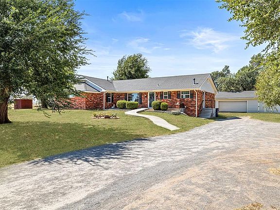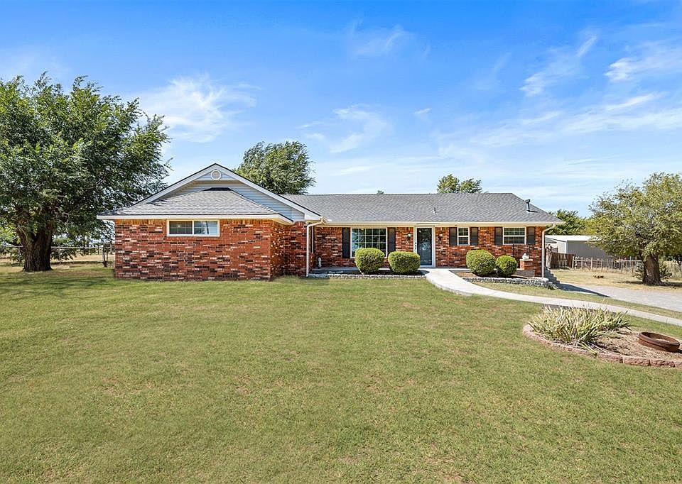 Welcome to 1406 S Radio Road in El Reno! This charming ranch-style home is nestled on 3.3 acres, just moments from the heart of El Reno. Conveniently located at the corner of Elm Street and Radio Road, it provides easy access to Interstate 40 while maintaining a serene country atmosphere. As you step inside, you'll be greeted by a bright living space, highlighted by a large window that invites natural light to fill the home. The adjacent kitchen and dining area overlook the expansive backyard and inviting in-ground swimming pool, perfect for entertaining or relaxing. Just off the dining space, you'll find a versatile office or bonus room complete with built-in cabinetry. The home features three generously sized bedrooms, each with ample closet space, including a primary bedroom with its own en-suite bathroom. Step outside to discover a vast outdoor space ideal for all your favorite activities. The detached garage provides plenty of room for storage or a workshop, offering endless possibilities for your hobbies. Recent updates to the exterior include new siding and a new roof, ensuring curb appeal and durability. Additionally, the detached structure has been upgraded with smart siding and a new roof. Just north of the home, you'll find horse stables within a fenced area, adding to the property's charm. An added bonus! NEW fiber internet has just been laid! There's so much to love about this home! Don’t wait—schedule your private tour today!