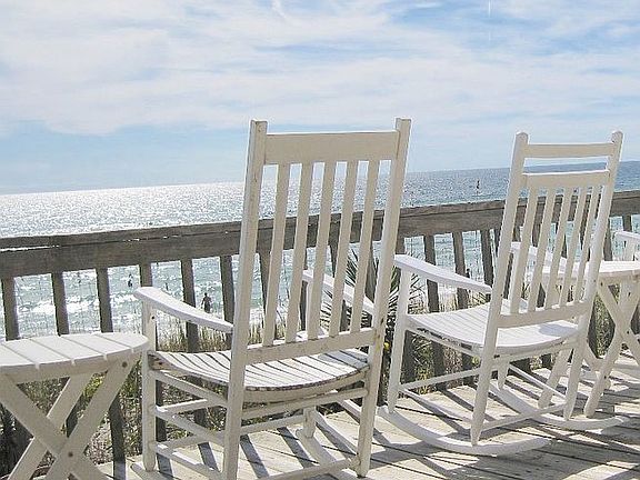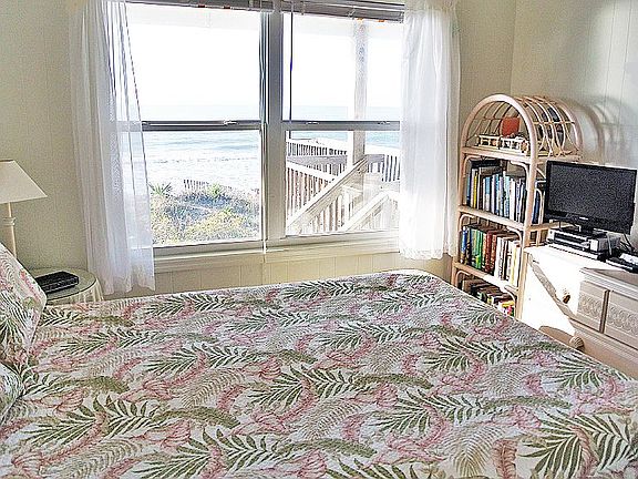 Seas Bees is an OCEANFRONT bright and charming one-level cottage featuring stellar views from walls of oceanfront windows, tasteful decorations, a well-equipped kitchen, and one of the largest oceanfront decks on the island plus a covered deck area with deck furniture. Seas Bees has central air/heat, ceiling fans, streaming service and TVs/DVD players in all 4 bedrooms plus living/dining room, wireless high speed internet access, new oven/stove in 2024, new gravel driveway, stereo/CD player, dishwasher, microwave, washer/dryer, outside shower, wet weather entry, landscaped front yard, and a street side sundeck.