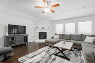 Cozy fireplaceOpen floor planFrench drainsOversized covered patioLarge backyardTwo living spacesOpen kitchen