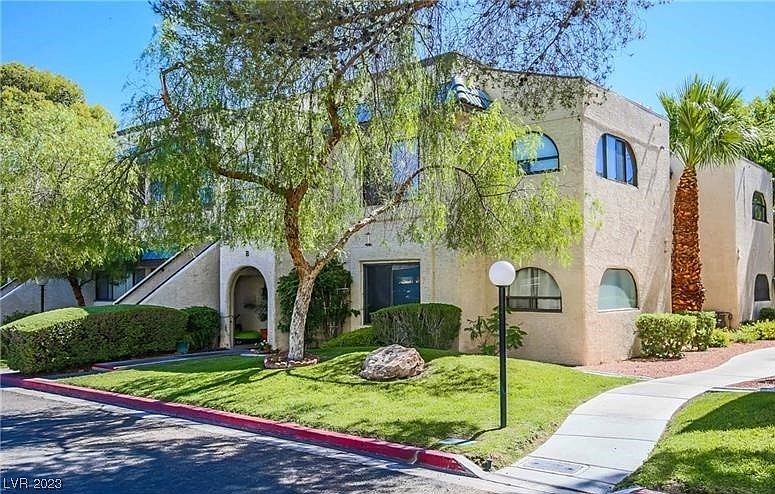 Cozy, freshly painted, 2 bedroom, 2 bathroom, second floor condo located minutes from shopping, restaurants, and the Las Vegas Strip. Need extra space? This unit comes with two balconies, both which have windows and can easily be used for extra storage or sleeping space. Gorgeous community pool and spa. HOA dues include water and trash. Welcome home!!