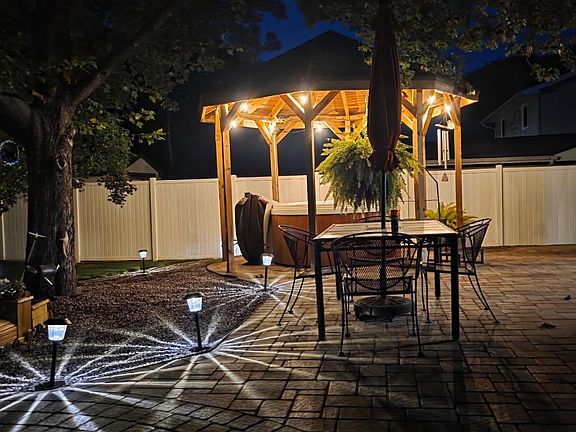 This beautiful home has it all. The kitchen offers abundant storage and flows nicely into the formal dining room. The spacious living room provides a great space for entertaining, with a convenient ¾ bath on the main floor. Step outside to a private, fenced backyard featuring a paver patio with a built-in fire pit and hot tub area — perfect for relaxing or gatherings.
