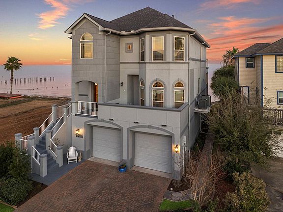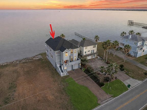 BAYFRONT LIVING & FINE, CUSTOM FINISHES COME TOGETHER AT EVERY TURN. ENJOY BALCONIES AT EVERY LEVEL, PICTURESQUE SUNRISES, OUTSTANDING 1,400 SQ FT 6 CAR GARAGE, HUGE COVERED PATIO & ELEVATOR SHAFT AT EACH LEVEL. INSIDE FEATURES TRAVERTINE TILE FLOORS, DINING ROOM W/ COFFERED CEILING, CUSTOM WINE BAR W/ SINK, BREAKFAST ROOM, CHEF'S KITCHEN W/ CUSTOM MADE CABINETRY, DBL VIKING OVENS, 6 BRNR GAS COOKTOP, B/IN FRIDGE & GRANITE COUNTERS, DEN WITH FIREPLACE, CROWN MOLDING & FRENCH DOORS OPENING TO A 34' WIDE BACLONCY W/ OUTDOOR KITCHEN & A 1ST LEVEL BEDROOM W/ EN SUITE BATH. 2ND LEVEL FEAT. AN INCREDIBLE GAMEROOM/OFFICE W/ VAULTED CEILING & WET BAR & PRIVATE BALCONY, PRIMARY SUITE W/ COFFERED CEILING, SPA BATH W/ AIR JETTED TUB & CUSTOM CLOSET, 3RD & 4TH BEDROOMS & FULL BATH. CRAFTSMANSHIP & CONSTRUCTION DETAILS ABOUND W/ 8' DOORS, CONCRETE PILINGS, STEEL BRACING, IMPACT RESISTANT DBL PANE WINDOWS, ROOF IN '25 & AC'S IN '23/'25. WALKING DISTANCE TO GREAT RESTAURANTS & SHOPS.