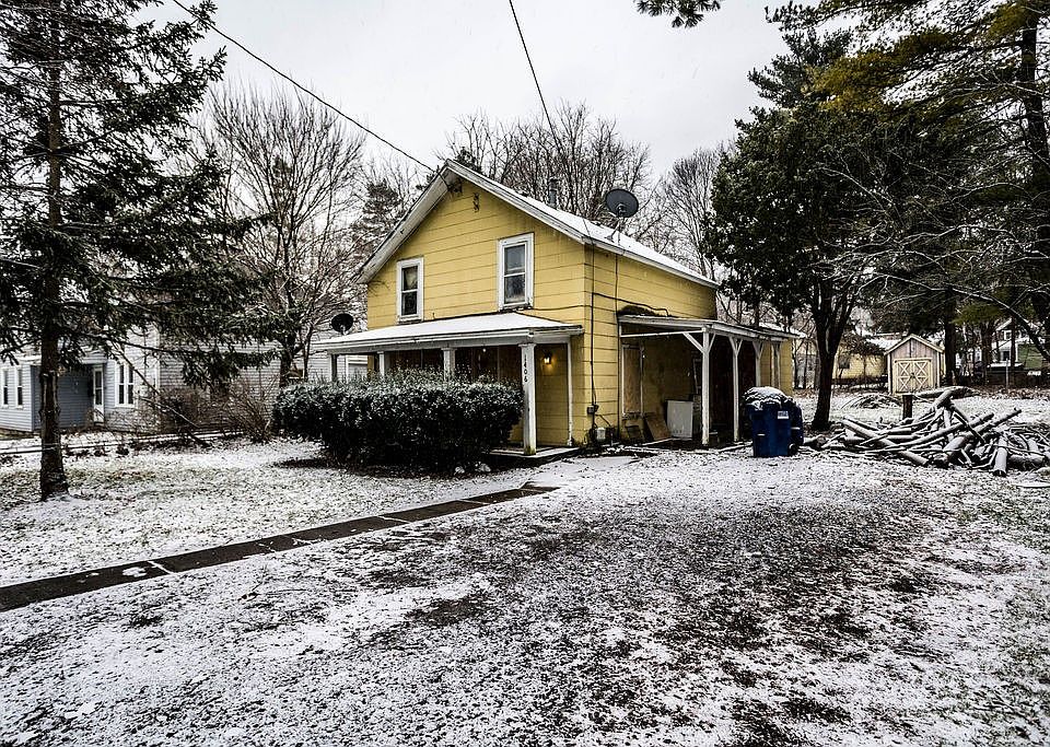 Property sold as-is, cash only, in need of extensive rehab. Seller discloses "Exterior of the home needs extensive work. Heavy trash out. Furnace replacement. Rewire. Kitchen and bathrooms need gutted. Flooring throughout. Window replacement. Foundation Issues." No further information available from seller or listing agent.
