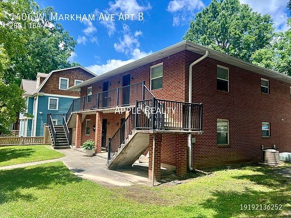 2 BR, 1 BA duplex across the street from Duke's East campus. Kitchen includes stove and fridge. Washer and dryer included. Central heat and A/C. Note: Pictures are from an adjacent unit with the same floor plan.