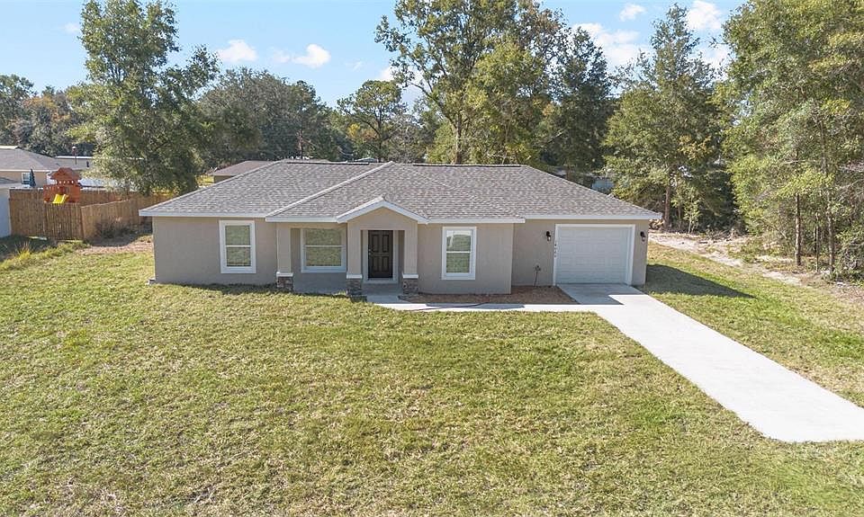 EASILY OBSERVABLE BETTER VALUE. THIS BRAND NEW HOME IS 100% COMPLETE. This MOVE-IN READY home includes WINDOW BLINDS and is fully finished for immediate occupancy. Located at 14060 SE 44th Ave in Summerfield, this brand-new Joshua II Model offers modern design, timeless comfort, and quality craftsmanship throughout. Featuring 3 bedrooms and 2 bathrooms, the home showcases an open-concept layout with vaulted ceilings, recessed lighting, luxury vinyl plank flooring, and a thoughtfully designed kitchen with all-wood soft-close cabinets and vanities, granite countertops, a full-sized Lazy Susan, and stainless steel appliances. Double-paned insulated windows enhance energy efficiency, and the included blinds make this home truly move-in ready. Situated on a spacious .32 ACRE, the property features a MOSTLY sodded Bahia lawn and a privacy-fenced backyard, providing ample space for relaxation or entertaining. Tucked away in a peaceful area yet conveniently close to shopping, dining, medical facilities, and The Villages, this home offers both privacy and accessibility. Built by a family-owned company that prioritizes quality and care, this property is ready for its FIRST OWNER! Schedule your showing today!