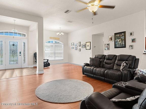 Active - Under Contract - Accepting Backup Offers - Welcome home to this meticulously maintained 4 bedroom, 3 full bathroom home located in the ever popular Spring Hill, Florida! This residence offers a perfect blend of modern style and comfortable living. With ample entertaining space, this home is sure to exceed your expectations. As you step inside, you'll immediately notice the open floor plan, allowing for a seamless flow between rooms. The office, conveniently situated near the entrance, features double glass doors, providing privacy for work or study, without losing the natural light. Whether you need a quiet space to focus or a dedicate area for your home business, this office is perfect for your needs. The master suite is located in its own private side of the home. So much space for a cozy sanctuary and the master bathroom is a true retreat with a separate tiled shower and a relaxing garden tub. The upgraded cabinets throughout the house add a touch of elegance to every room. The rear doors leading to the covered lanai are equipped with mini-blind inserts, allowing you to control the amount of natural light while also maintaining privacy. Vaulted ceilings enhance the spaciousness and grandeur of the home, creating an open and airy atmosphere. The well-designed layout ensures comfort and convenience for you and your family. The location offers a fantastic lifestyle with its proximity to schools, shopping centers and recreational amenities. Enjoy the benefits of residing in a peaceful community while having easy access to the hustle and bustle of city living. Don't miss your opportunity. Schedule a showing today and envision yourself living in this remarkable home.