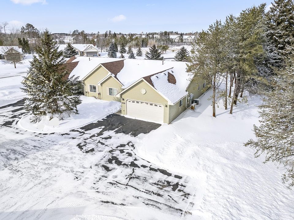 The primary bedroom features a private full bath along with a walk-in closet! Open style home that has 2 bedrooms and an office or flex space to use however you need. The attached garage has a mini split to keep the temp. comfortable. The rock around the home was replaced along with new plants. Conveniently located close to Cub Foods, Target, other shopping and lots of dining choices. Newer roof. Turn in the rake, snowblower and lawn mower for golf clubs or just time to enjoy other things fun!
