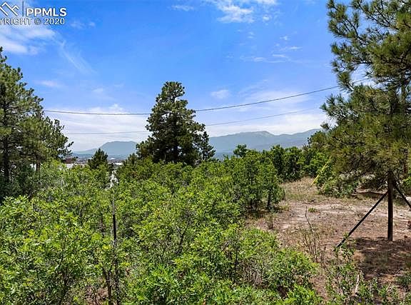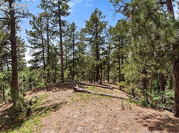 Rare find - extremely close in lot only 3 lots north of Flying Horse! 5 treed private acres with complete full range mountain views, city light views and views of the Air Force Academy! Multiple hilltop building sites. Moss rock outcroppings. No covenants or HOA. Domestic drilled and capped well. Fantastic privacy. Full dramatic views can be opened by tree removal if desired. Fantastic access to Highway 83 and I-25.