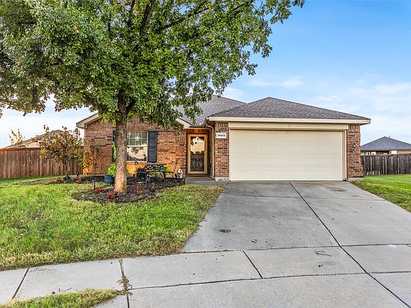 Welcome to this spacious single-story home located in the desirable Sendera Ranch community of Fort Worth, offering approximately 1,956 square feet of living space on a well-sized lot. This residence features 4 bedrooms and 2 full bathrooms with an open-concept layout designed for functionality and modern living. The entry leads into a bright foyer that opens to the main living area, which connects seamlessly to a spacious kitchen equipped with ample cabinetry, a large center island with bar seating, generous counter space, pantry storage, and a breakfast area with natural light. The primary suite is privately situated at the back of the home and includes an en-suite bathroom with a double-sink vanity, soaking tub, separate shower, and a large walk-in closet. The secondary bedrooms are thoughtfully placed on the opposite side of the home, providing comfortable living accommodations and flexible use for home office, guest space, or playroom options. Additional highlights include a dedicated laundry room, attached two-car garage, and neutral finishes throughout that allow for easy customization. The property sits on a landscaped lot with a fenced backyard, covered patio, and plenty of room for outdoor living, entertaining, or future additions. Sendera Ranch offers extensive community amenities including walking trails, playgrounds, multiple pools, sports fields, and open green spaces. Located with convenient access to major highways including US-287 and I-35W, this home is positioned near shopping, dining, schools, and employment centers. With a functional floor plan, comfortable room sizes, and community features designed for everyday living, this home provides an excellent opportunity to own in one of the area’s established neighborhoods with sought-after amenities and convenient proximity to Haslet and the surrounding metro area. All information is deemed worthy, buyer or buyers agent to verify including meaurements and schools. Thank you!