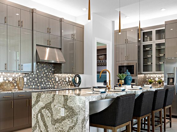 **Under Construction** This brand-new Leslie floorplan, built by Kolter Homes, is situated on a southern facing homesite in the new 55+ Esprit community. The home includes 3 bedrooms, 3 bathrooms, and a 3-car garage. The owner's suite and lanai have been extended by 4' to increase both indoor and outdoor living space, and a 16-foot wide by 10-foot-tall sliding glass door connects the great room to the lanai, which also features an outdoor summer kitchen. Inside, the kitchen comes with gas cooking, an upgraded built-in pantry, a waterfall style quartz island, and second tier upper cabinets. The owner's shower has been extended to the deluxe shower option, and the great room comes with a 74'' electric fireplace. This Leslie also includes a tankless gas water heater and spray foam insulation for added energy efficiency.