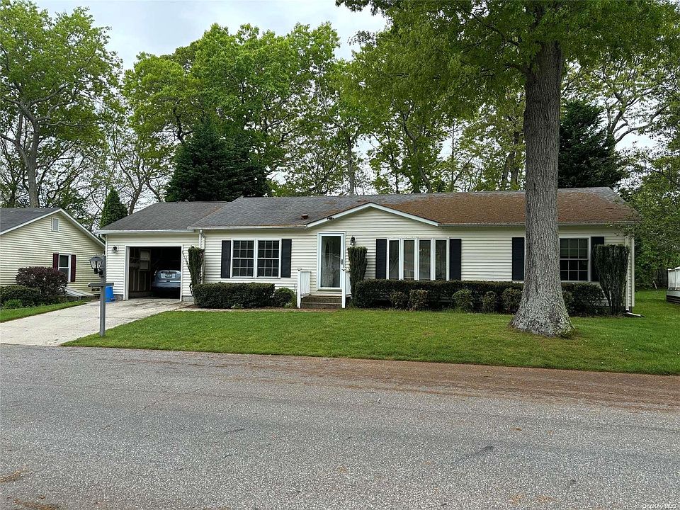 Welcome to Foxwood Village, a 55 & Over Gated, Land Leased Manufactured/Modular Home Community! This beautiful Ranch Home is Situated on a Tranquil Lot with Wonderful Outdoor Space, A 1 Car Garage with Interior Access to the Laundry Room, A Rear Deck, & A 4ft Crawlspace below for Storage. The Interior Features 2 Master Suites, Each with their own Bathroom and Each Located at Opposite Ends of the Home.- The Open Floor Plan has Cathedral Ceilings in the Living Room & Opens into the Dining Area with a Slider out to the Rear Deck. The Kitchen has an Eat At Counter & an Area for A Small Table and Easy Access to the Laundry Area & Garage. Bedroom #1 is Located off of the Living Room and features a Walk In Closet, Wall to Wall Carpet, & A Full en-Suite Bath with Linen Closet. Bedroom #2 is Located off of the Kitchen Area & has Wall to Wall Carpet, A Walk In Closet & also a en-suite Bath with a Linen Closet. The Bathroom can also be accessed from the Kitchen Area for Guest Use. All Appliances Stay, Home was converted over to Natural Gas Heat, CAC, & Sprinkler System. This Gated Community has an Outdoor Pool & Clubhouse with many Activities, Water & Septic All included in the Monthly Maintenance of $776. Come and Enjoy All that The East End has to Offer!, Additional information: Appearance:Mint,Green Features:Insulated Doors,Min Age:55