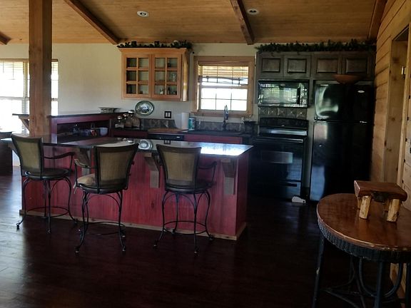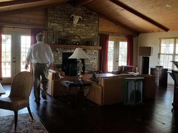 Located at the base of Arbuckle Mountains. Furnished! Great room with cathedral and rock fireplace. Over 1500 sq.ft wood decks. Perfect condition. Very stylish Ranch Style. Fabulous kitchen w/huge island. Perfect for entertaining. Adults only please. Live on the ranch! Decks on 3 wides Tenant pays elect.& water