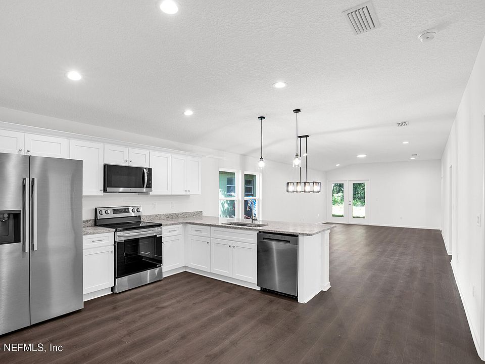 ASK ABOUT THE END OF YEAR MAJOR INCENTIVES FOR FIRST RESPONDERS, TEACHERS & GOV EMPLOYEES | NO HOA/CDD Fee! Discover the NEW Amelia floor plan, a 4-bedroom, 2-bath, and 2 car garage home. Features include an open floor plan, LVP flooring throughout, granite countertops, 9-foot ceilings, stainless steel appliances, soft close white cabinets, sleek matte black upgraded lighting package, and upgraded master suite with glass enclosed shower and separate 36'' soaking tub. Pre-wired for data cables and ceiling fans. The exterior boasts durable Hardie cement board siding for lasting peace of mind. Situated on a charming walkable street down from the Palatka Golf Course, The Ravine State Gardens and just minutes from restaurants, the riverfront, shopping, and parks. Conveniently located approximately 45 minutes from St. Augustine, 1 hour from Jacksonville and Daytona, and approximately 45 mins from Gainesville. Backed by a 1-year builder warranty and a 10-year structural warranty!