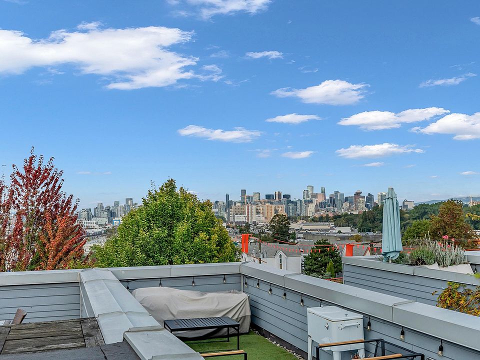 "Home Sweet Home". Welcome to the home of LOVE. Located in heart of the most desirable community. This south facing 3 level gorgeous quality built townhouse, feature the main living space with an outdoor patio, bright spacious layout,open concept, living room float nicely with the dinning room and kitchen. Well maintained like new. The middle level contains the second bedroom and a den, with the master bedroom on the third floor. Enjoy the sunset on the 250ft Northwest facing rooftop patio, with the view of the Northshore mountains and Vancouver Downtown. Walking distance to parks, shopping, community centre, skytrain, transit, recreations, restaurants, banks, etc. Create your Perfect "DREAM" Home for your family starting here!