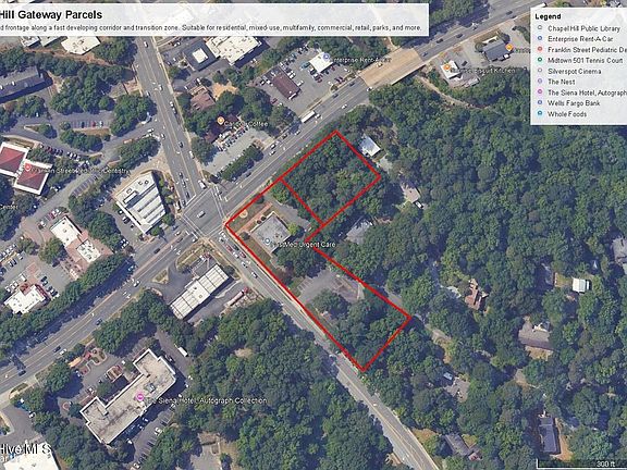 Marquee corner lot in 15-501 high density corridor transitional area is waiting for the next visionary to construct a landmark development. Unmatched road frontage with easy access to I-40, downtown Chapel Hill, and public transit. Two adjoining lots on the corner of N Estes Drive and E Franklin Street. You won't find another opportunity like it. Make your mark in the most recognized strip in the Triangle. Sale includes 1403 & 1407 E Franklin Street.
