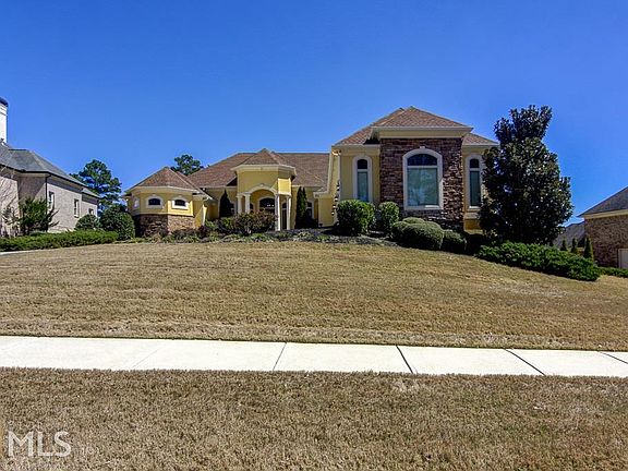 Beautiful fully custom Mediterranean style ranch home on over 4,000 square foot basement overlooking 7th hole! This amazing home features a gorgeous patio off of the gourmet kitchen, granite counter tops, large island, a spacious living area with fireplace, and a stately office/study! Large bedrooms & huge master bedroom that has large his and her WICS with master bath, a Roman shower, large jet tub, double vanities & wet bar! 12' ceilings with crown molding & beautiful hardwood floors throughout. Mature landscaping! Immaculate upkeep! Gated community with walking trails, aquatics center, tennis courts, community activities & scenic views of the 1100-acre Reservoir! Come tour this incredible home in one of South Atlanta's sought-after communities!