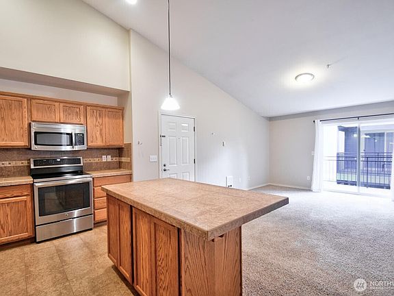 Citi Life condo in the heart of West Olympia! This beautiful end-unit features vaulted ceilings, a spacious living room, separate dining area, and kitchen with stainless steel appliances and tile counters. The primary suite includes a walk-in closet and full bath. Both bathrooms feature tile finishes. Enjoy a private deck with storage, full-size washer and dryer, and covered parking. Low-maintenance, move-in ready with easy access to the freeway.