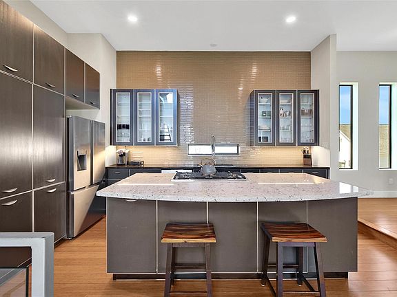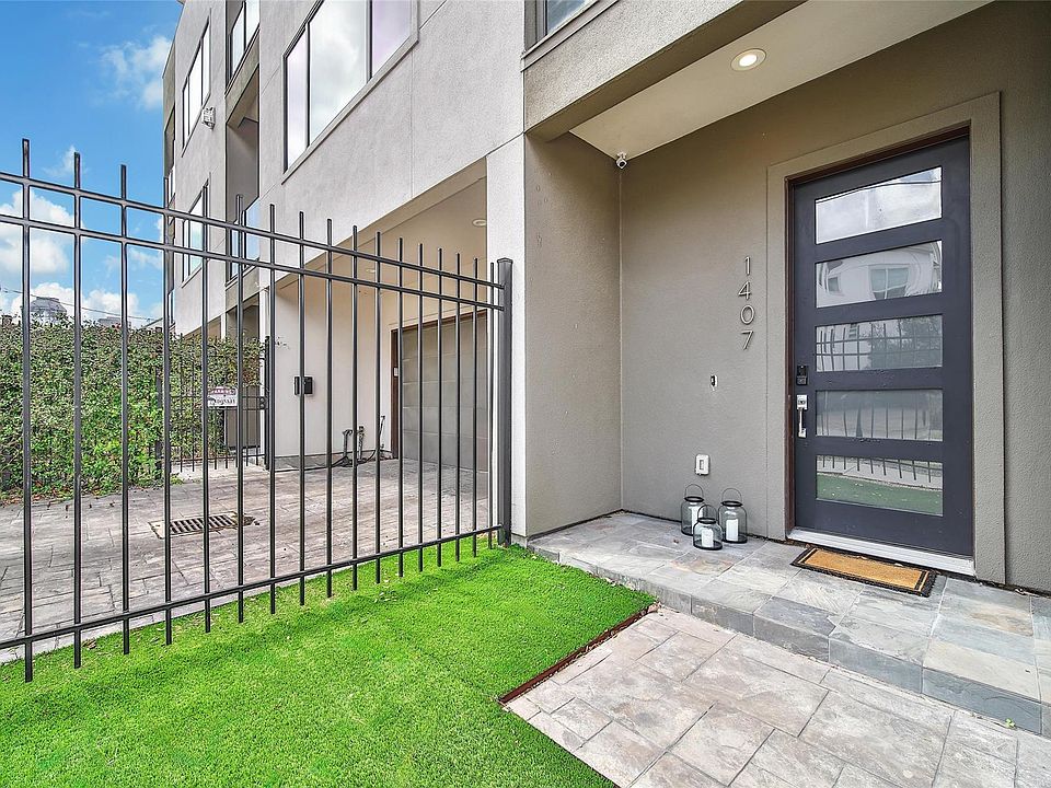 A striking blend of modern architecture and urban elegance, this four-story residence captures the essence of city living with natural light, clean lines, and panoramic skyline views. The European-style kitchen features sleek cabinetry, modern finishes, and flows seamlessly into open living spaces anchored by warm wood floors. Each bedroom offers a private en-suite bath, creating a retreat of comfort and style on every level. The top-floor gym or flex space with rubber-mat flooring adds a functional touch for today’s active lifestyle. Outdoor living shines with a private rooftop deck, turfed front yard, and private driveway which is rare for this location. With its thoughtful design, light-filled interiors, and unmatched access to Houston’s vibrant core, this home is where modern sophistication meets effortless city living.