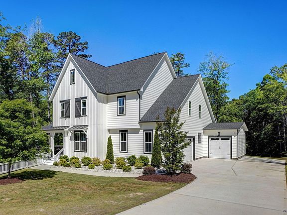 Welcome to this stunning 4 bedroom, 4 and a half bathroom modern farmhouse nestled on 1.31 acres of picturesque land. As you approach the home, a custom-made swing on the front porch invites you to relax and enjoy the peaceful surroundings. Step inside to discover an open concept layout that seamlessly blends modern design with farmhouse charm. The main level boasts stunning engineered hardwood floors that lead you to the heart of the home - a gourmet kitchen that will inspire your inner chef. Featuring quartz countertops, stainless steel appliances including a sub-zero refrigerator, a large island, and ample storage space. Natural light pours in through large windows. A handcrafted home office awaits, showcasing a handmade barn door, custom desk, built-ins, and cabinets, offering a stylish and functional workspace. Retreat to the first-floor primary suite, where relaxation awaits with its luxurious amenities including a spa-like bathroom and a walk-in closet designed for convenience and elegance. Upstairs, a versatile loft area provides additional living space or a cozy spot for relaxation. Step outside to the screened-in porch and extended deck, where you can enjoy al fresco dining, entertaining guests, or simply soaking in the serene views of the private backyard!