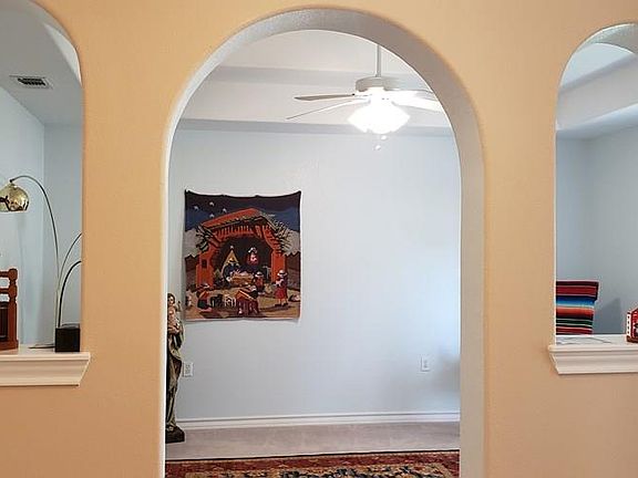 Come fall in love with your next home. This home is a very unique, well built, 3/3/2 brick home in a nice established neighborhood with no HOA! The foyer invites you to tall decorative ceilings, arched doorways, neutral colors with lots of natural lighting. This well thought out floor plan that flows and has all rooms wrapping around the kitchen making it the center of attention. The bedrooms: Grand Suite, Guest Suite and 3rd Bedroom are all in different corners of the home giving everyone lot of privacy. Both suites have an additional room attached giving you many options. Home is beautifully landscaped with mature trees/citrus trees (grapefruit, valencia & mars orange, peach, avocado) blooming flowers and plants giving you that tranquility feeling and also perfect for birders.